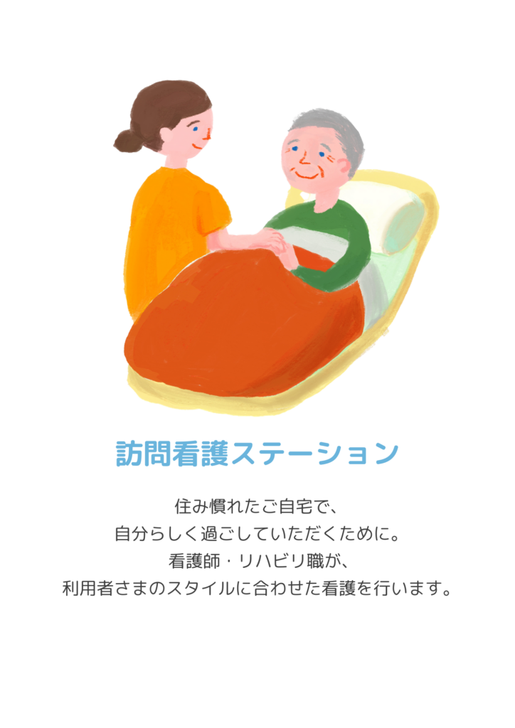 訪問看護・ケアプラン・自費サービスの3つの事業を展開しています。